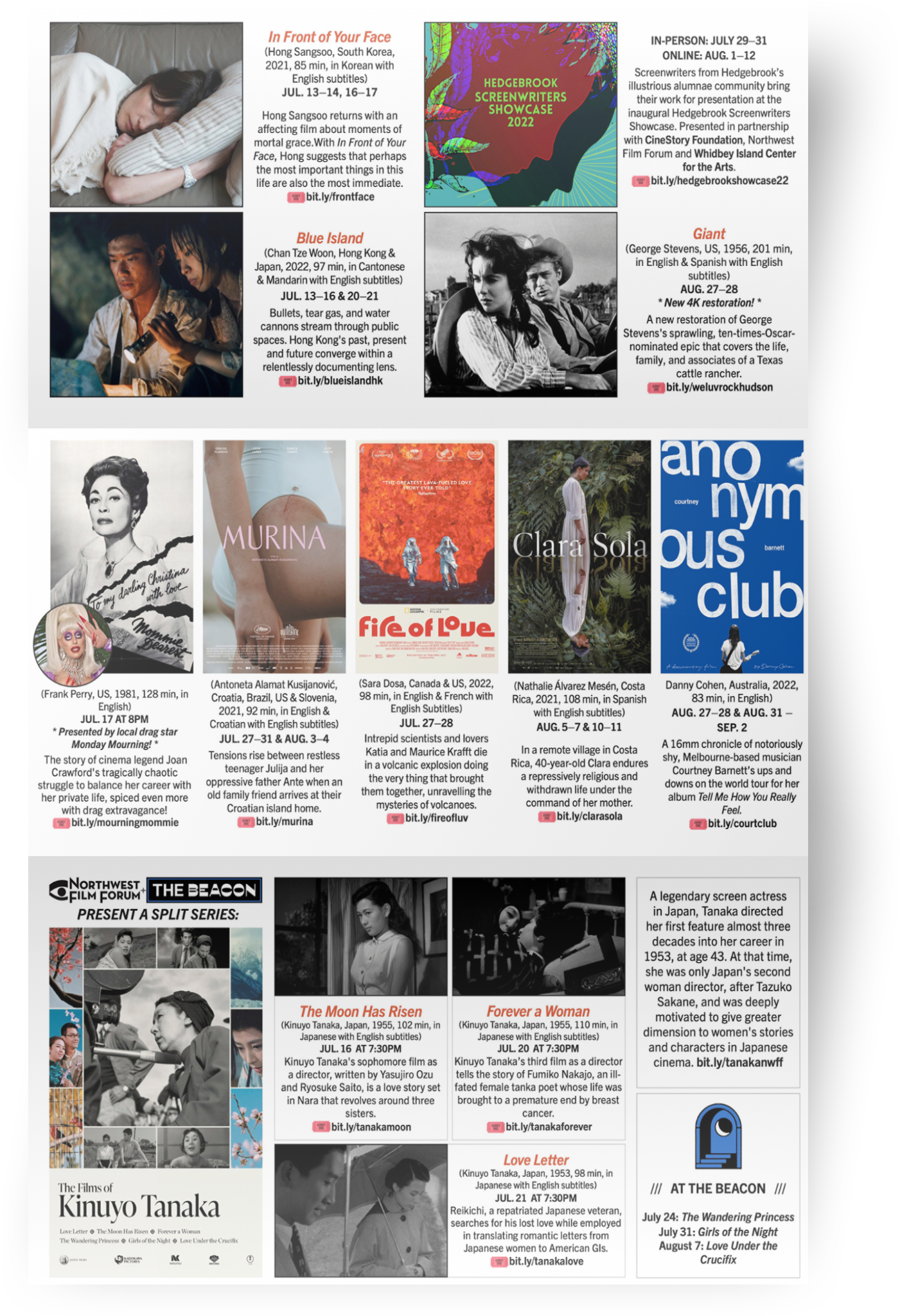 Through Northwest Folklife's CCWD Internship Program, I had the opportunity to partake in a six month graphic design and marketing internship at the Northwest Film Forum. Projects I worked on include a slideshow for the Forum's annual gala, bookmarks for Children's Film Festival Seattle, festival filmmaker assets, and more.