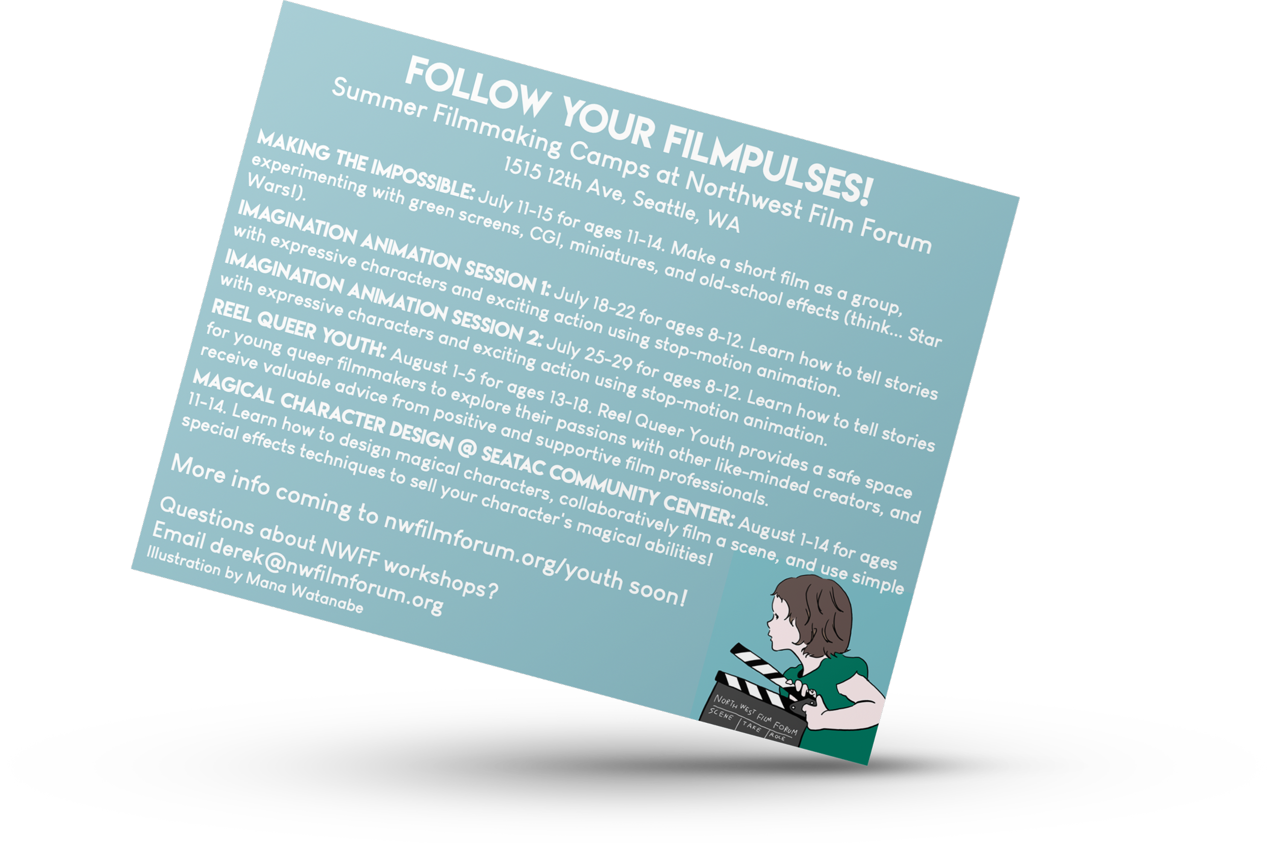 NWFF Education Workshops x Children's Film Festival Seattle: Promotional Cards and Bookmarks